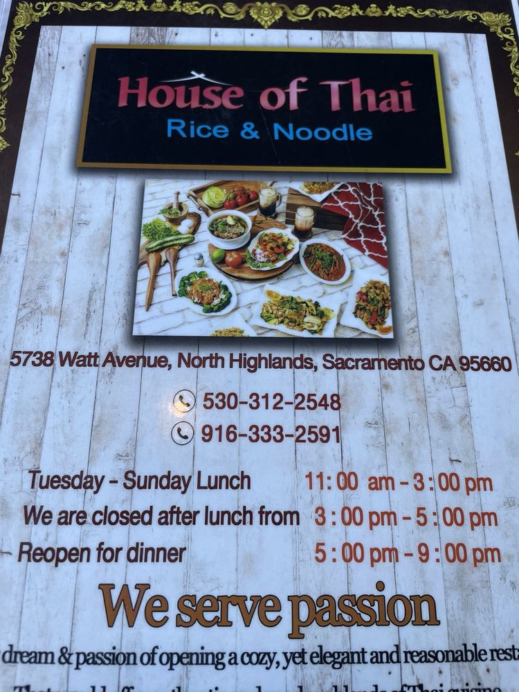 House Of Thai Rice & Noodle, located in North Highlands, CA, offers a wide range of authentic Thai dishes with a variety of appetizers, soups, and salads to choose from. The menu includes crowd favorites like satay, egg rolls, tom yum soup, and crispy catfish salad. With the option for vegan and vegetarian dishes, this restaurant caters to all dietary preferences. Customers have raved about the flavorful dishes and excellent service, making it a must-visit spot for Thai food enthusiasts. The ambiance is welcoming with Asian-inspired decor, creating an authentic dining experience. Whether you're looking for a casual lunch or a group-friendly dinner, House Of Thai Rice & Noodle is a top choice for delicious Thai cuisine.